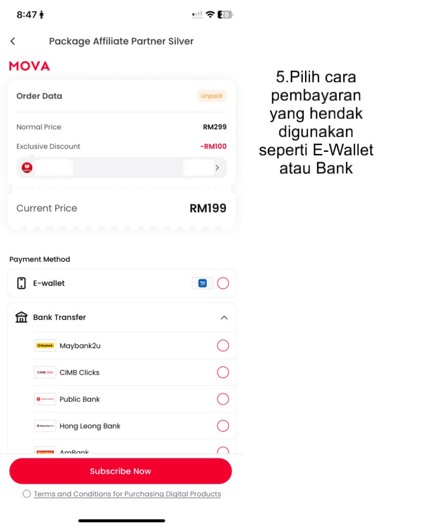 Lebih menarik, MOVA tidak hanya memberi cashback, tetapi turut membuka peluang menjana income berterusan. Konsep affiliate partner membolehkan anda membina rangkaian pengguna sendiri, dan setiap kali mereka berbelanja, anda juga mendapat ganjaran. Dengan kata lain, MOVA menjadikan anda bukan sekadar pengguna, tetapi juga rakan kongsi dalam ekosistem ekonomi digital.
